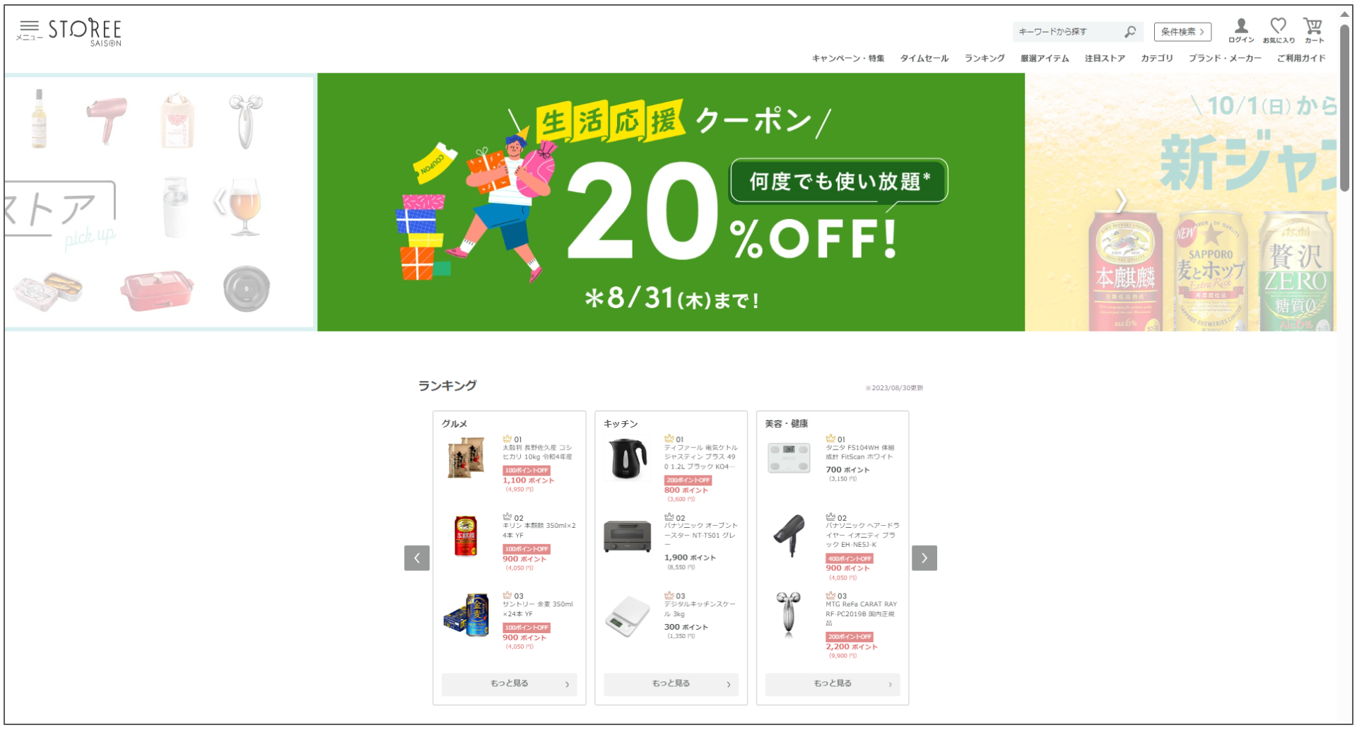 株式会社クレディセゾン様がセゾンカード会員様向けに運営される総合通販サイト(ECサイト)、「STOREE SAISON」。
