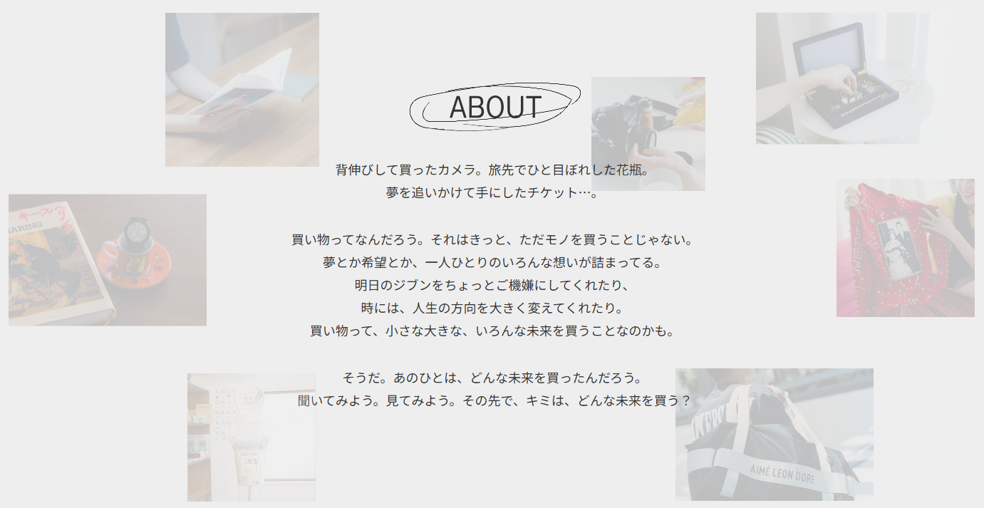 TV CM『未来を、買ったんだ。』シリーズと連動した企画となっており、様々なジャンルで活躍する著名人への「買い物」に対する考え方を、実際にアイテムを購入した際のエピソードなどを丁寧に掘り下げることで、その人ならではの価値観に触れられる記事コンテンツとなっています。